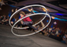 The German Wheel is also known as the “human hamster wheel”. This unusual, crowd pleasing act is especially suited for larger scaled stages and open areas while they work within, around, and on top of the rolling wheel and maneuver it with skillful acrobatic turns, and ‘coin like’ spins.